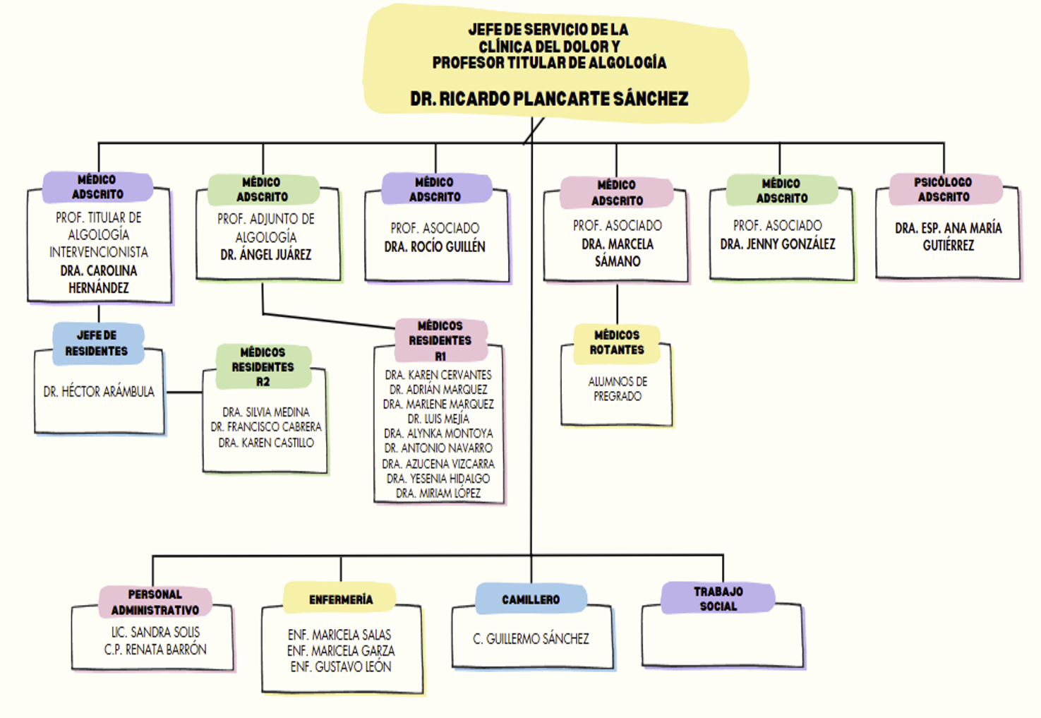 Al día de hoy, el Servicio de la Clínica del Dolor está constituido por un equipo multidisciplinario integrado por Médicos Algólogos, Enfermeras Especializadas, Psicólogas, Trabajadoras Sociales y Personal Administrativo, así como de personal de la salud en formación, tanto en el área de Algología como también en Enfermería.